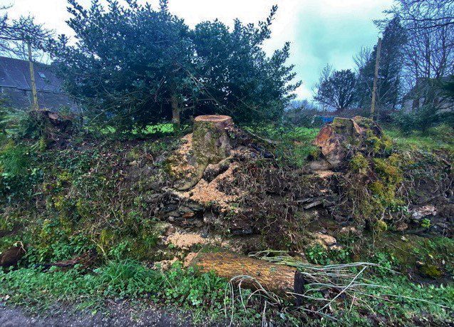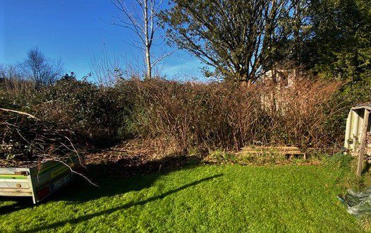 When we arrived, the bank opposite was massively overgrown, the farmer who owned it not having done any sort of cutting or clearing for years. The problem this caused us is that, because it is to the south of us, it meant that for much of the day the garden, and especially Stable, were in shade and gloom.