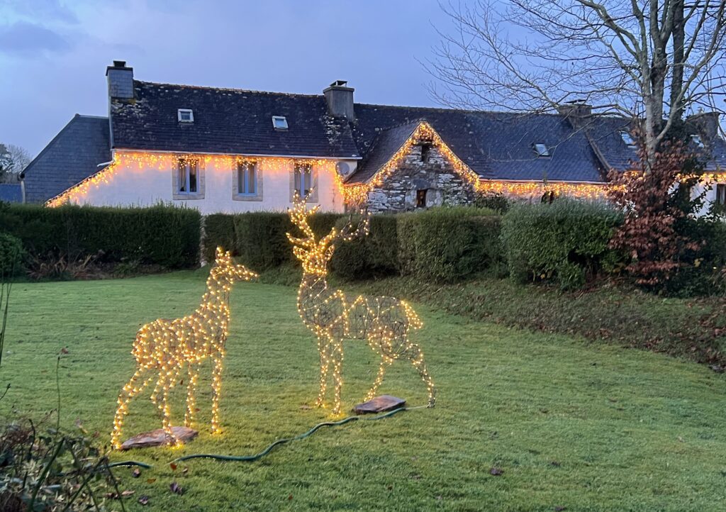 I have asked the company where we bought them if they supply adapter plugs separately – I am yet to hear whether they do – but I suspect I will need to do the same to this as I did to the other last year, and buy some new string lights and attach them to the frame during the year. Although, looking at the large deer in the orchard I think I need to revisit this and add more lights again!