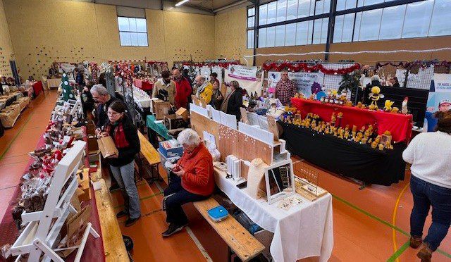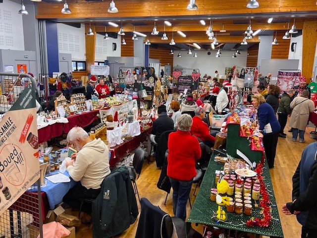 Today, despite the appalling weather, we managed to get out to a couple of Christmas markets. Many of the markets that were planned had moved to indoor venues as it has been a very wet and windy day. It’s great that every commune seems to have their own salle des fêtes and / or sports hall! We went a little further afield this time to Locquirec (one of favourite seaside towns in the summer) and stopped in Lanmeur en route.