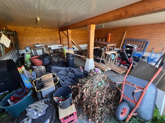 Almost all of the ‘easy’ things I mentioned in my last blog, have been removed (although I need to paint the final bits of the coffee table before moving that to the pool house) which leaves the things that are harder to dispose of immediately. Some of that is a large pile of knot weed foliage and rhizome that I have been collecting as we try and kill the weed behind the pool.