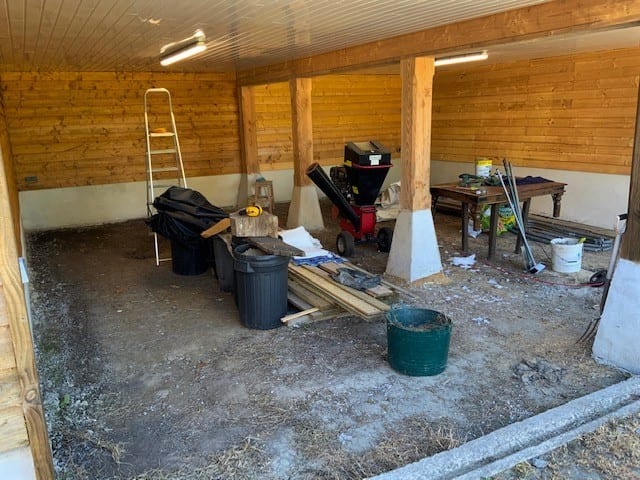 The large space has proven valuable, and will continue to do so, for my projects and repairs. The garden furniture we bought in our first year is starting to fall apart. Again, our bad in not giving it proper protection in the winters, so we have replaced the tables and chairs and the space will allow me to eventually have a go at repairing the old so we have spares.