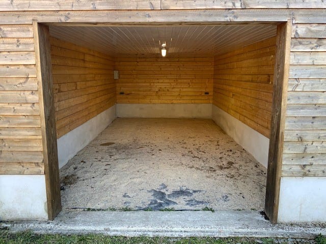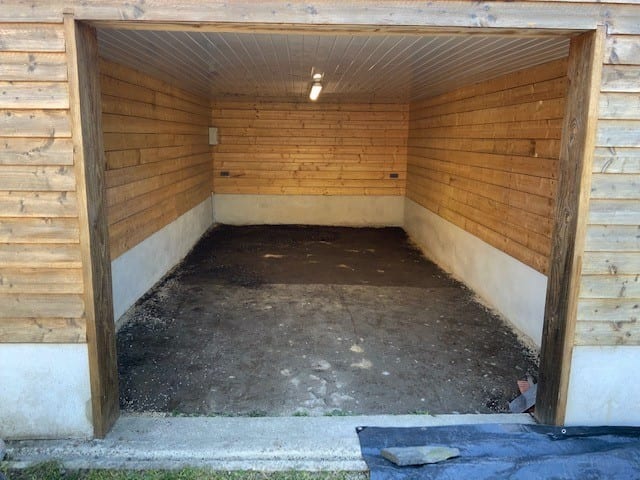 The last time this end garage bay had been empty (July 2018) we hadn’t planned to concrete it (probably should have done) so had added a layer of spare gravel that we didn’t need for the pétanque pitch. This too needed to be removed and we have (now) added to the boule pitch!