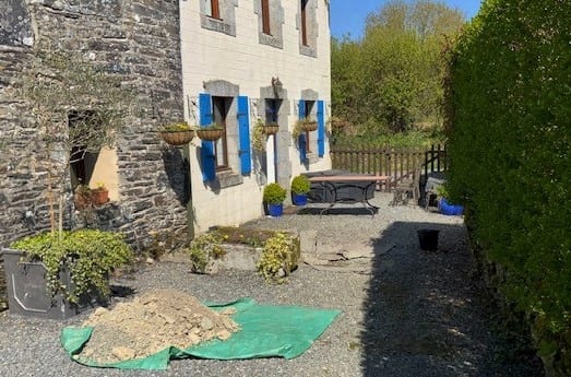 With my previous major task completed, rebuilding the stone wall at the front of the orchard which borders Hent Gorreker, I was able to return to the ongoing major task – the garage. It does remain my focus as, when done, will allow us to tidy up the area between it and the petanque pitch. This includes what was a 13-tonne pile of gravel we had delivered in 2018 for various jobs which has prevented us driving from the front to the back gate ever since. The area has always had to be my service yard with all the projects we have on and, as such, we have always been conscious it is not the most attractive with random piles of material which we want to remove.
