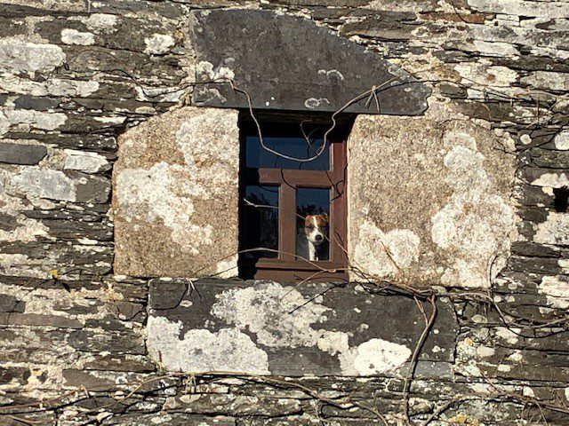 Our guests currently staying in Priory also have a pet, Terri, a Parsons Terrier, who has found a favourite spot to watch people coming and going on our drive. Can you see her?