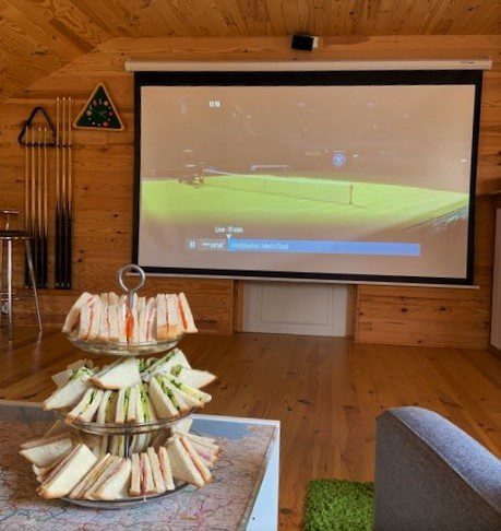 High tea while watching the Wimbledon Men’s Final – in Kergudon’s cinema