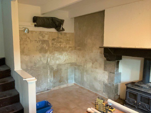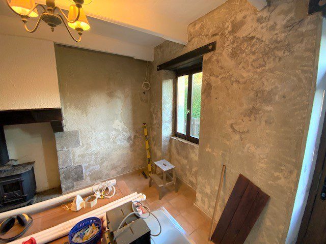 With the render removed there was evidence that, at some point in its history, Granary had been very, very damp, which had caused fibrous rot to grow and spread across the walls. When we arrived, there was no heating in Granary other than the woodburner, and we know that the previous owners, who only lived in France for 6 months a year, shut the gîtes up over winter which, doesn’t do these old, stone buildings any good.