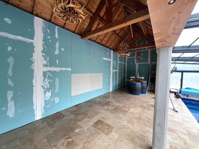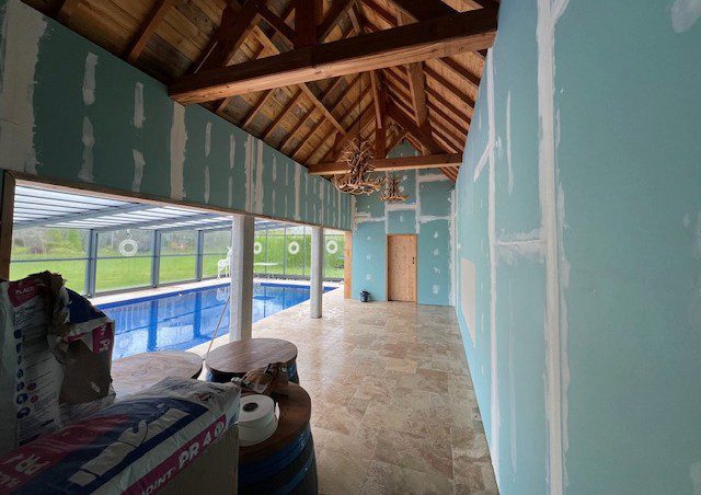 Pleasingly, I did manage to finish the boarding task, although it took me until midway through Tuesday to do. With the boarding complete there are no sheets left on the pool house floor although because they had been on the floor, albeit elevated on some battens, was one the reasons it took longer than I’d anticipated.