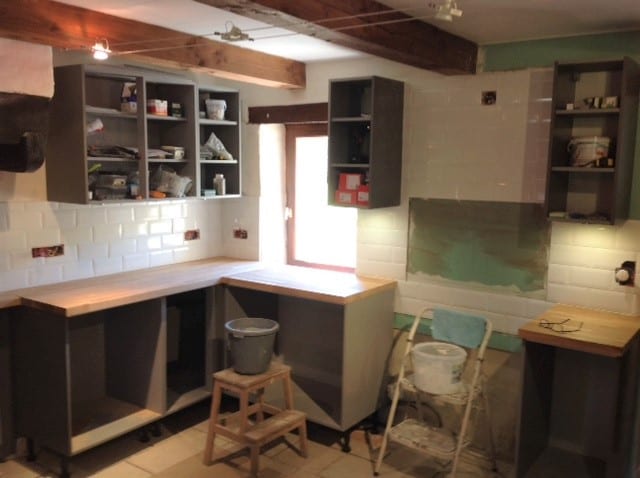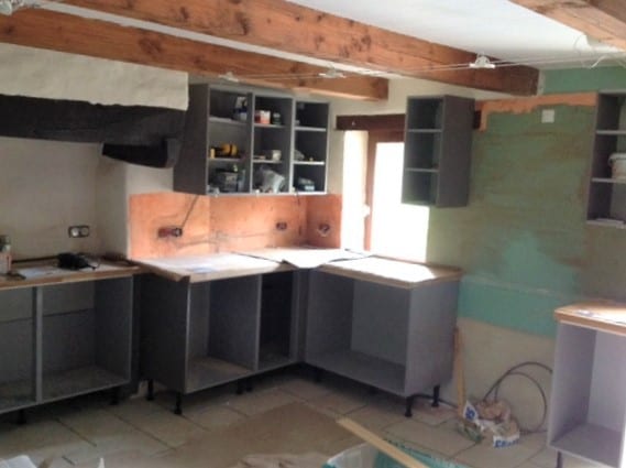 While Pascal was doing the electrics, I was focussed on installing the kitchen, something I have never done before on my own. However, I am really pleased with the result so far. We needed to get the tiling in on the ‘dry’ side of the kitchen so that, next week, Pascal can do the sockets and switches there and, finally, we have been contacted by Darty who tell us that the cooker and fridge freezer will be delivered next week – 4 months after ordering them!