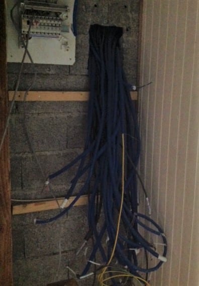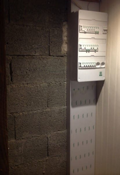One of his largest jobs was installing the new fuse board. We asked him to put it next to where the old board is, at the top of the stairs, so as he was doing his work a huge snakes’ wedding was being created with the huge numbers of cables required to comply with French regulations. The new board is much neater but you can see just how many circuits we have had installed to bring Priory into the 21st century.
