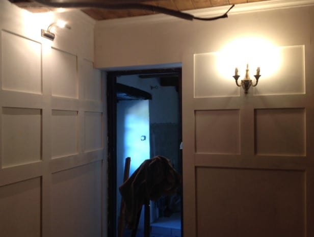 Pascal has managed to wire everything in now and, while we’re not on mains power as yet, he has used the existing power from our own house to check all the circuits – and things are looking amazing. We are especially pleased that our new chandelier works as I really wouldn’t want to climb to the top of the space again!
