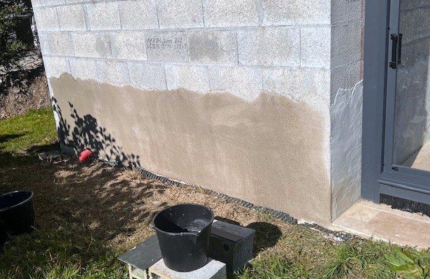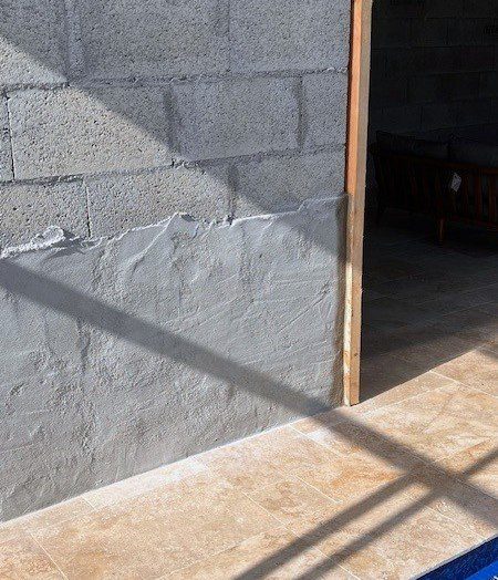 I said at the end of the blog that one task had become a bit more pressing.  That is we have decided to move the heat pump which heats the pool, from the rear of the pool house to the side.  Before I am able to do that, I wanted to render the end wall, as I had done the others, and I will need to create a new concrete base for it to sit on, as I did originally.