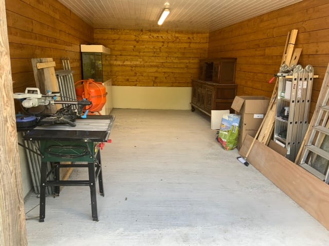 The concrete floor has also proved really and meant that I have been able to use that bay as a workshop area in the last week when the weather has been very wet – and I can sweep up the sawdust!